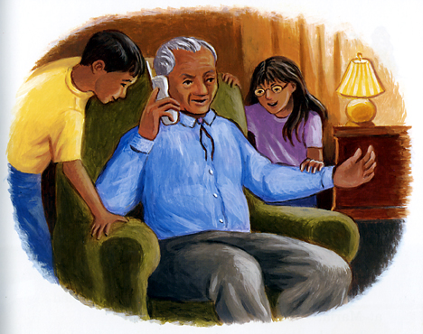 Grandpa's phone call, Acrylic, 8 x 10 Illustration © Rigby Books.